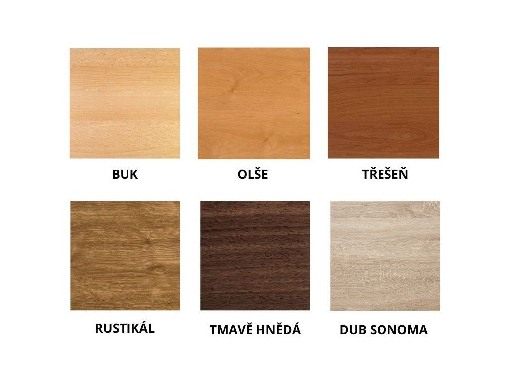 Možnost volby odstínu moření: buk, olše, třešeň, rustikál, tmavě hnědá, dub sonoma.
