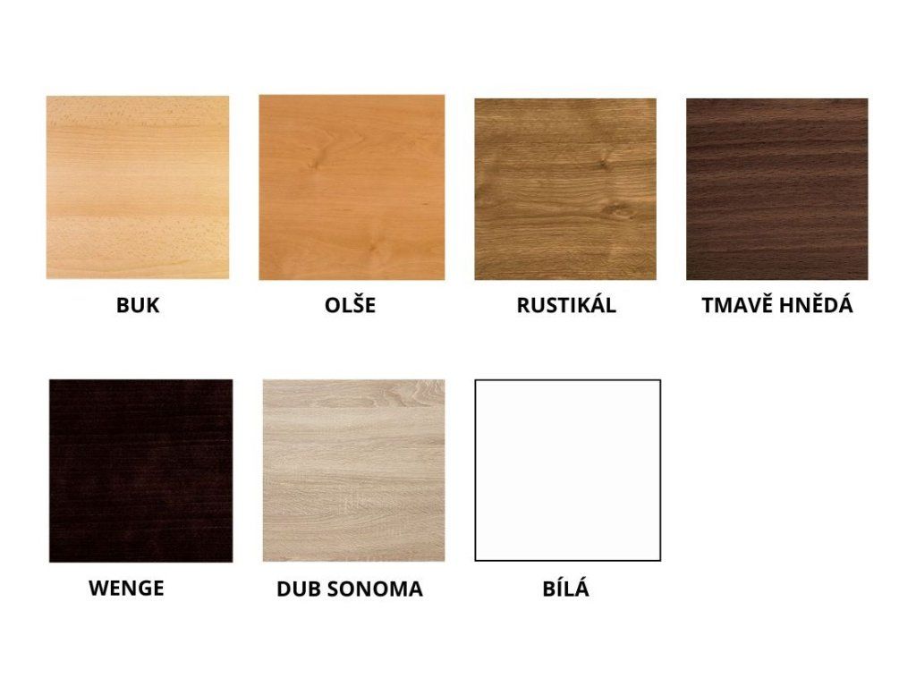 Možnost volby odstínu moření: buk, olše, rustikál, tmavě hnědá, wenge, dub sonoma, bílá.