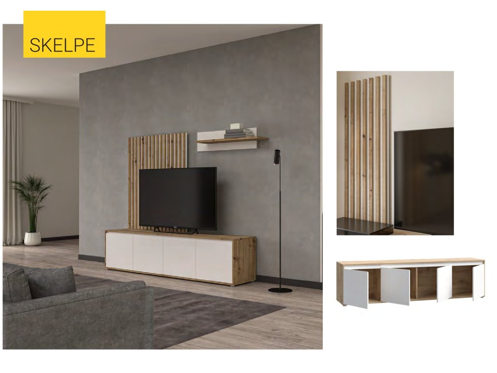 Moderní obývací stěna SKELPE v provedení BÍLÁ / ARTISAN (M961).