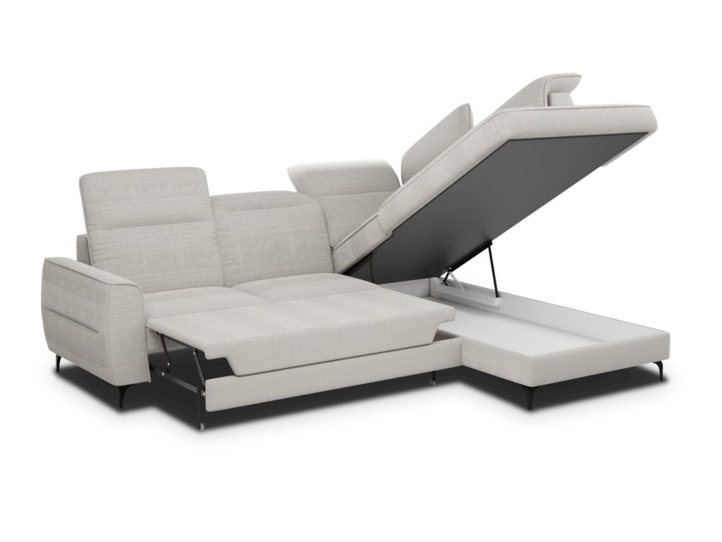 Rohová sedací souprava Jonas dokonale vyhovuje potřebám moderních interiérů a životního stylu. Její moderní design se vyznačuje čistými liniemi a elegantními proporcemi, což z ní činí ústřední bod každé místnosti. Zároveň funkčnost nedělá kompromisy v estetice – každý prvek rohové sedací soupravy Jonas byl navržen s ohledem na maximální pohodlí. Vybavená funkcí spaní a úložným prostorem pro ložní prádlo zajišťuje maximální pohodlí. Pět nastavitelných opěrek hlavy vám umožní přizpůsobit polohu vašim potřebám.