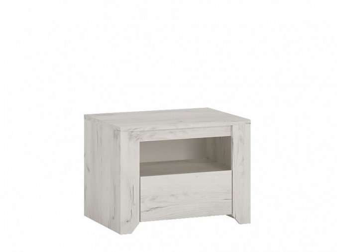 Praktický noční stolek RUBIO 95 s otevřenou policí a jednou zásuvkou.
