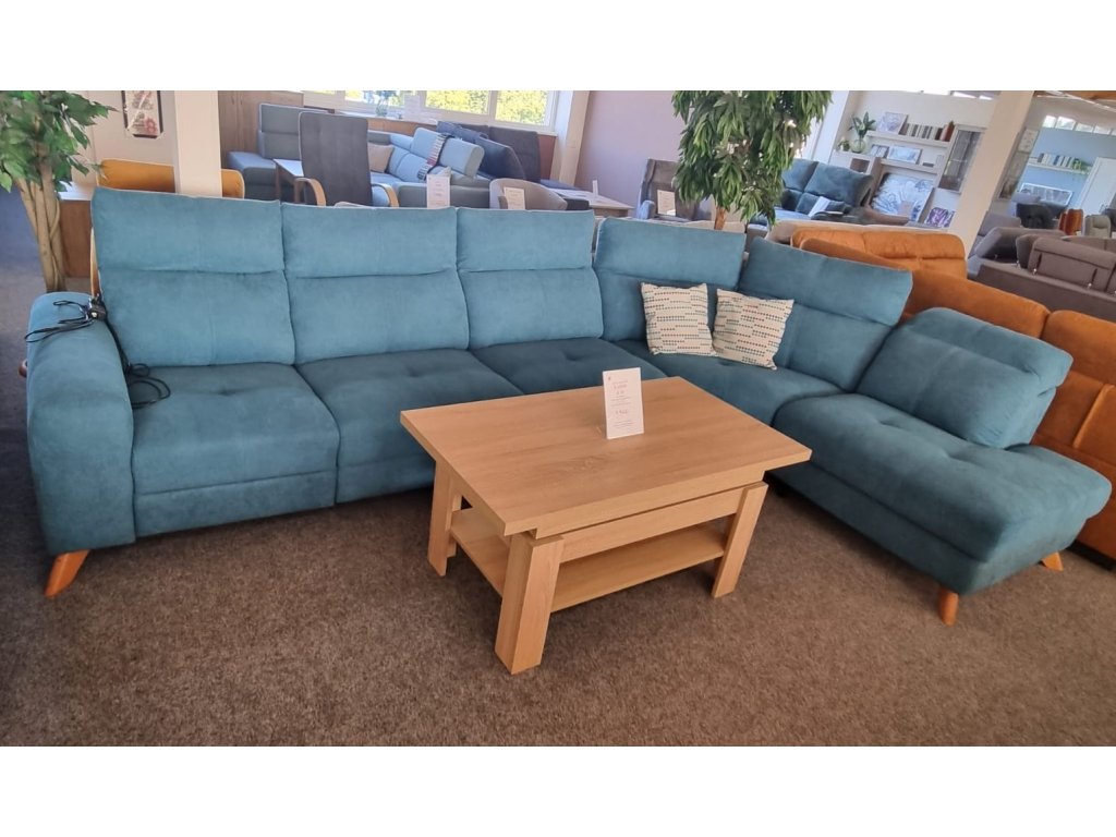 Moderní sedací souprava IMPERIO s relaxačním dílem (elektr. ovládání) a úložným prostorem.